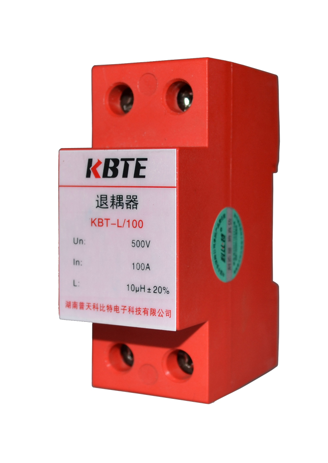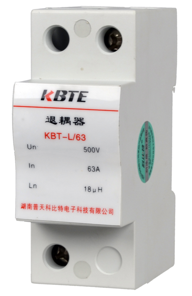 KBT-L系列退耦器串联安装于额定电压500V及以的低压供电系统中,用于增加导线感抗,弥补导线长度不足,协调不同规格防雷器之间的配合问题。典型应用在B级和C级的防雷器都安装在一个配电箱中的场合。当电压开关型防雷器至限压型防雷器之间的线路长度小于10m,或限压型防雷器之间的线路长度小于5m时,在两级防雷器之间应加装退耦器。