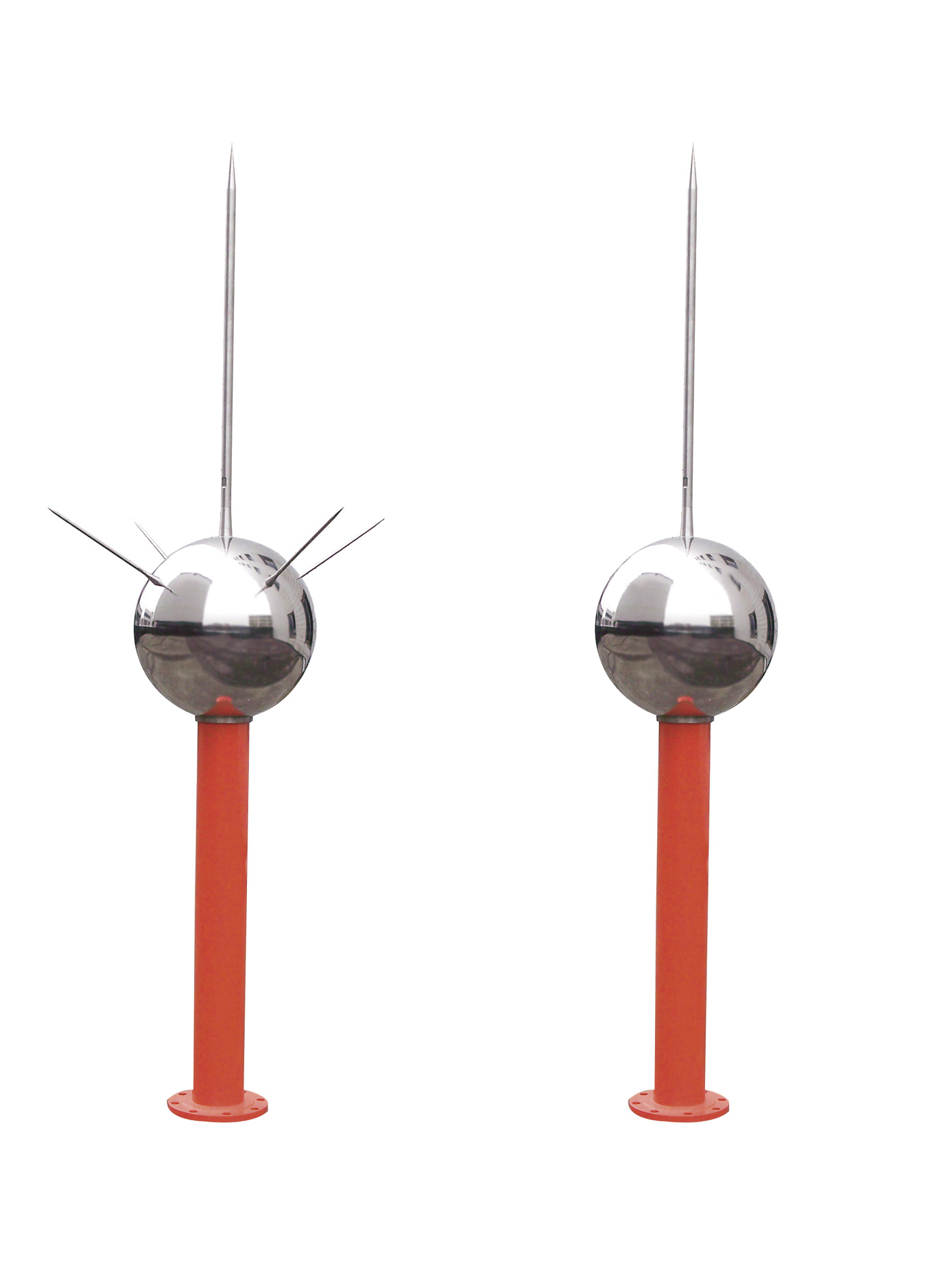 KBT-UA优化避雷针根据电磁学原理进行了特殊的优化设计,使其对雷电能提前优化,首先使避雷针的滚球半径增大,在同等条件下可大大降低避雷针的高度。其次,由于其对雷电提前优化效果较好,其在雷云聚集能量不足够多、云地之间的电场不是足够大时提前触发,闪击的雷电流相对于普通避雷针要少得多,接闪避雷针周围的感应电磁、场也要少得多,二次雷击的危险也将大大降低,从而达到很好的保护效果。